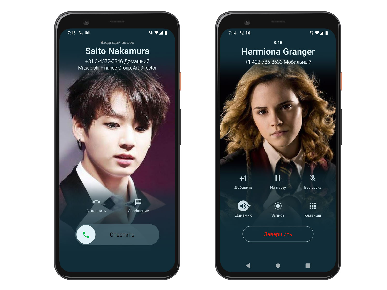 Приложение поддерживает T9, легко настраивается, имеет встроенный редактор тем и разные варианты оформления экранов звонков, включая фото на весь экран.