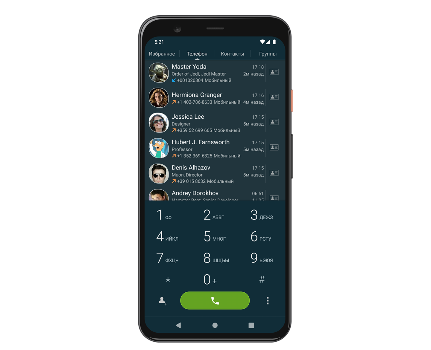 True Phone полностью заменяет стандратный интерфейс для совершения звонков и управления контактами